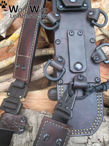 This pouch is removable and for maintenance, just unscrew it- Firesteel loop (removable)- Wolf Pouch for a Fällkniven DC3 whetstone - can be opened from the left or right side - Six ITW Nexus D-rings (moveable and removable) to hook up additional gear or to attach the Wolf Equipment Sling or other universal slings- Leather keeper for a leg strap (backside)- Double welt - Double stitching with double passage of waxed linen thread for maximum strength - Wolf Wind adjustable belt loop system through three different belt loop options which ensure the sheath stays totally secure on your belt. Fits belt widths up to 6.5 cm (2.55'') and is secured with Scovill Mil-Spec DOT snap buttons- Ambidextrous- Wolf Wind retention strap system which allows to move easily with your finger the strap from one side to another to avoid damage it by the blade cutting edge. Also, the leather retention strap can be replaced, if needed.Carry options: - on your belt (standard vertical carry) - as a Bandolier with the Wolf Equipment Sling or other universal slings Contents: - High-quality vegetable-tanned leather (8-12 oz) - Modular leather sheath - Reinforced stress points - Handcrafted and hand-stitched with waxed linen thread - Black oxide treated steel Chicago screws - Heavy-duty Scovill Mil-Spec DOT snap fasteners - US Military 550 Paracord - INCLUDED - Fiebing´s professional oil dyes - Water, mold, bacteria and mildew repellant finish Note: - All the Hardware is MADE IN USA and EUROPEAN UNION - ESEE Junglas knife, Suunto MC-2 compass, Fällkniven DC3 whetstone, firesteel, map, paracord and Swiss rucksack not included One large Altoids-sized tin INCLUDED (NET WT 1.76 OZ) Options: - Firesteel loop: 9.5 mm (3/8''). Other sizes available by customer request - Sheath color: Dark Brown- Stitching color: Natural, Black or Brown ?Please note: the Wolf VIII Pathfinder sheath does not include the Wolf Equipment Sling but it can be purchased together, for so, add € 170 Wolf Equipment Sling for ESEE Junglas: The Wolf Equipment Sling was designed to allow you to carry your Wolf VIII Pathfinder sheath or other Wolf equipment in a comfortable way and close to hand in a readily accessible manner. This accessory is made with traditional reinforced leather combined with one of the best modern hardware and the strongest quick release buckles. Also, like the Wolf Wind pieces and attachments, it can be removable and replaceable. The Wolf Equipment Sling is quickly adjustable for length and carry options Features: - Two ITW Nexus C.L.A.S.H hooks- AustriAlpin Cobra buckle. This buckle easily allows you with the highest safety and efficiently to fasten or unfasten the buckle from your Wolf Equipment Sling under any circumstances- MIL-SPEC tubular webbing MIL-W-5625- High-quality vegetable-tanned leather (8-12 oz)