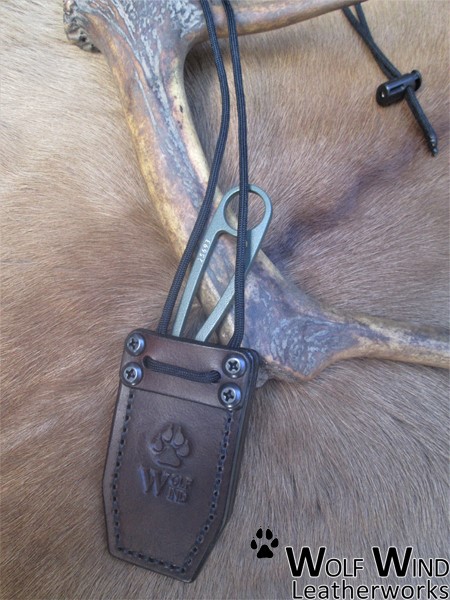 Features: - Neck carry through the US Military 550 Paracord or;- Vertical belt carry with the replacement for the FOMI clip (extra);- Ambidextrous - Double passage of waxed linen thread Contents: - High-quality vegetable-tanned leather (8-12 oz) - Modular leather sheath - Reinforced stress points - Handcrafted and hand-stitched with waxed linen thread - Black oxide treated steel Chicago screws - US Military 550 Paracord - Fiebing´s professional oil dyes - Water and mildew repellent finishNote: - All the Hardware is MADE IN USA and EUROPEAN UNION - knives not included